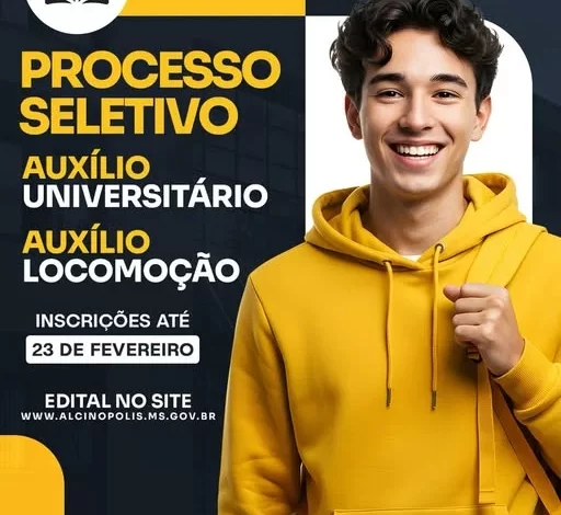 ALCINÓPOLIS – Já estão abertas as inscrições para os processos seletivos que oferecem suporte financeiro aos estudantes de Alcinópolis: o Auxílio Universitário e o Auxílio Locomoção. Os programas são voltados para alunos que buscam a formação técnica ou superior e necessitam de ajuda para manter seus estudos ou custear o deslocamento.