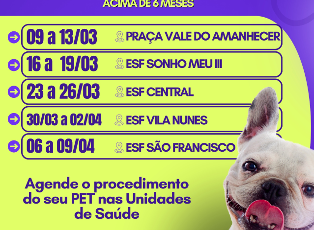 A Secretaria de Saúde destaca ainda que o calendário poderá sofrer alterações conforme a demanda de atendimentos. Para obter mais informações sobre os serviços do Castramóvel, os interessados podem entrar em contato pelo telefone (67) 9-9837-3734.