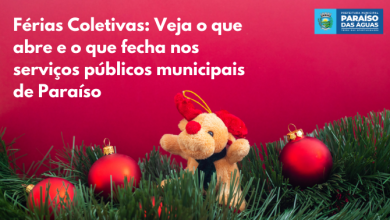 Férias Coletivas: Prefeitura de Paraíso encerra expediente nesta quinta (18); veja o que funciona na Saúde e SAAE no fim de ano