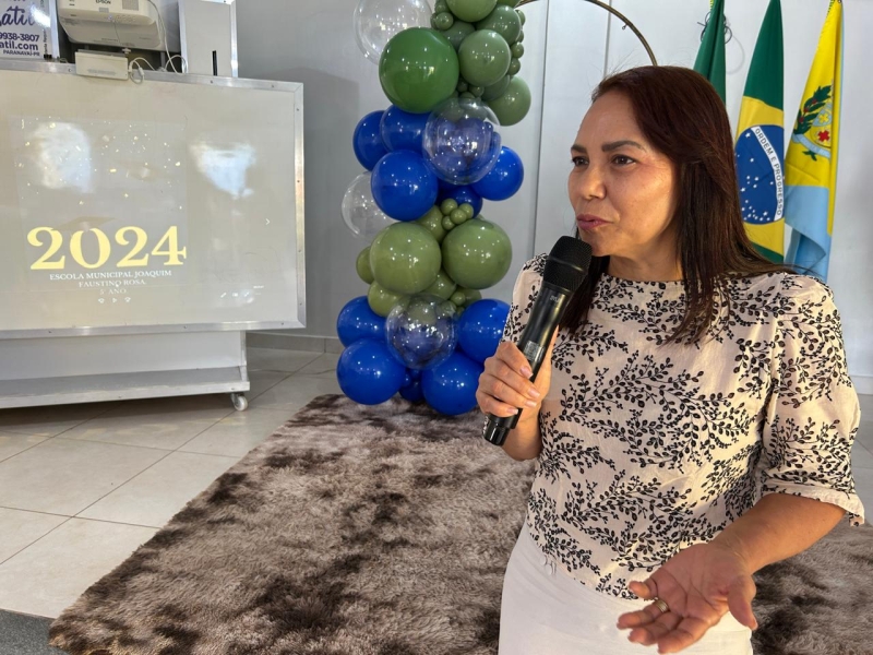 A Secretária de Educação, Maria Aparecida Francisca de Souza Almeida, expressou gratidão a Deus e parabenizou a equipe da Escola Joaquim pelo excelente trabalho. Ela destacou a importância da parceria com o prefeito municipal, delegado Cleverson Alves dos Santos e o vice-prefeito Roni Cota, que apoia melhorias na educação do município. Aos formandos, ela incentivou a continuidade dos estudos com sede de conhecimento, lembrando que Deus está guiando suas jornadas. Encorajou-os a não desistirem de seus sonhos, pois serão eles que cuidarão do futuro. Desejou sucesso e felicidade a todos.