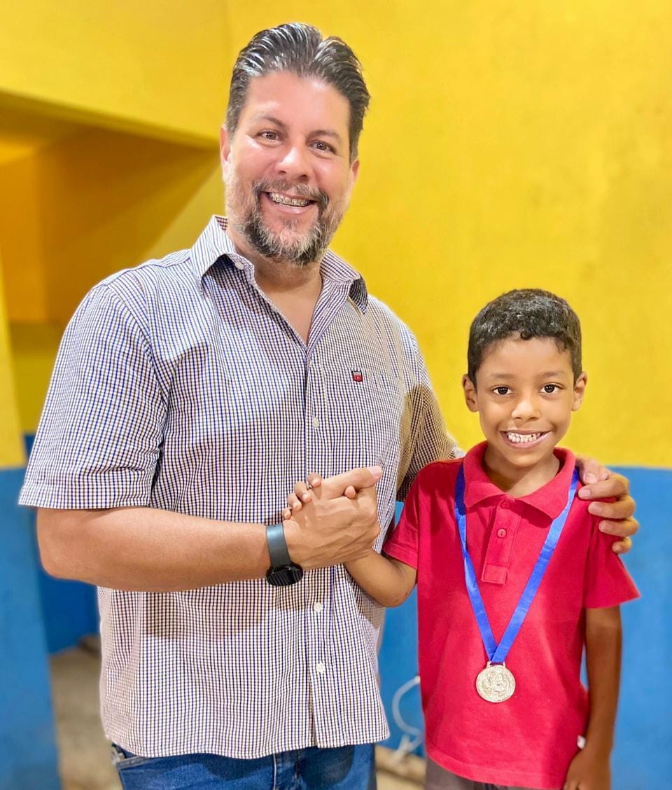 No encerramento, o prefeito Delegado Murilo acompanhou as partidas finais e participou da cerimônia de premiação, entregando as medalhas de ouro, prata e bronze aos alunos classificados do 1º ao 3º lugar em cada categoria e modalidade.