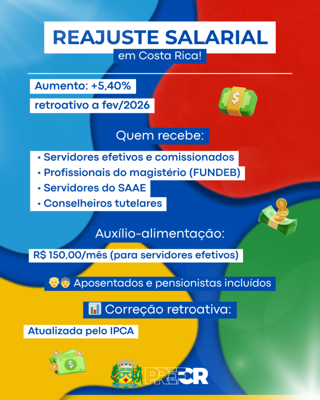 De acordo com a legislação, o reajuste será de 5,40% sobre as tabelas salariais dos servidores efetivos e comissionados da administração direta, além dos funcionários do Serviço Municipal de Água e Esgoto (SAAE). O mesmo percentual também será aplicado aos profissionais do magistério vinculados ao Fundeb e aos conselheiros tutelares.